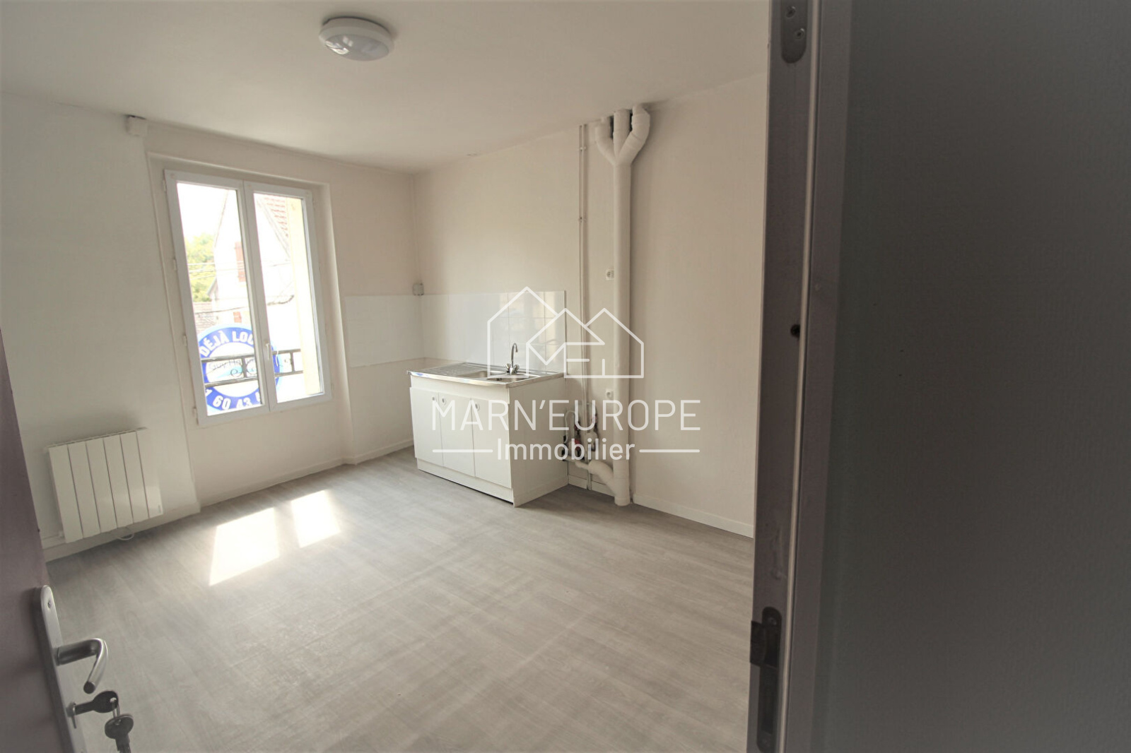 L'agence Marn'Europe Immobilier vous propose dans immeuble de 5 appartements, en centre ville de ESBLY, située dans une rue calme, un appartement de type F2 très lumineux, au 1er étage. Composé d'une entrée desservant un séjour et sa kitchenette ouverte sur la pièce de vie, aménagée d'un évier donnant sur rue, une chambre séparée et une salle d'eau avec WC.